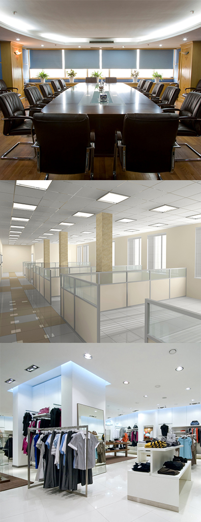Bureaux d'entreprises privées ou publiques, commerces, banques, centre sportif
