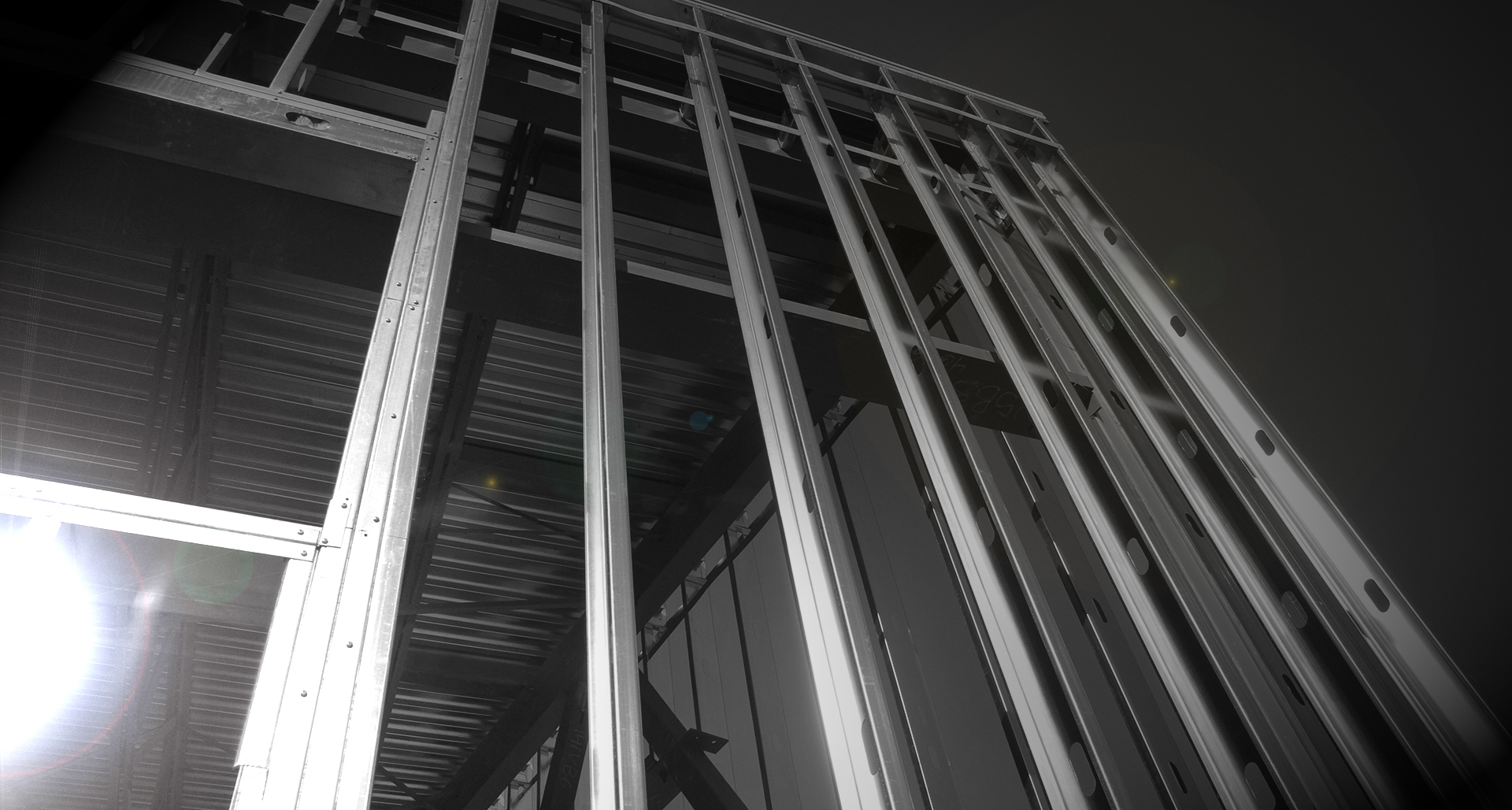 Montants métalliques, plafonds suspendus, cloisons temporaires, gypse